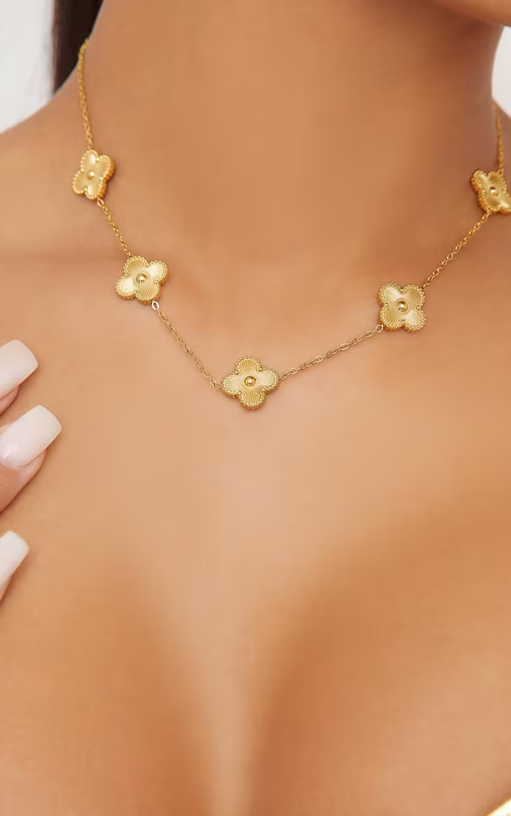 The Fleur Necklace is your go-to glow piece — dainty, Parisian, and designed to catch the light. With textured floral charms on a fine chain, it’s the kind of effortless luxe that elevates any outfit.