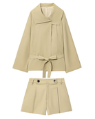 Your new go-to for city days and crisp-weather nights. The City Trench features a structured cropped fit with a tie waist and flared sleeves — effortlessly chic on its own, or paired with the matching shorts for a full look that turns heads.
