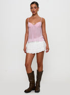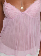 This delicately pleated cami top with lace detailing is designed to make you feel confident, elegant, and a little daring. Slightly sheer with a soft drape, it adds just the right amount of flirt to your outfit—perfect for layering or wearing on its own.